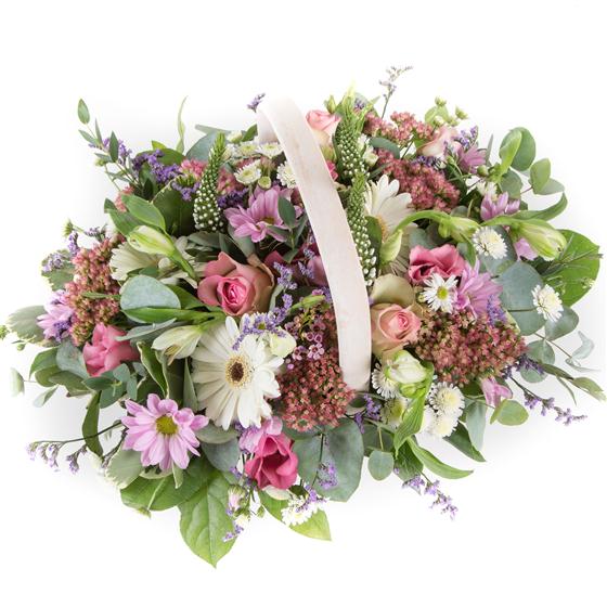• This flower arrangement is delivered in a basket